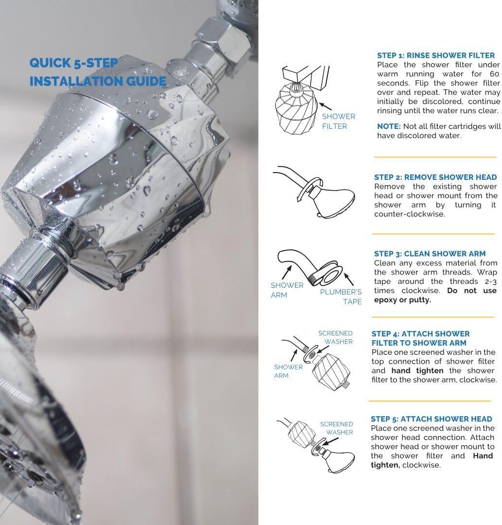 City Water? Well Water? Low Pressure? Sediment is a beast! So we Pre-Installed the Cartridge for You! We included 2 easy-to-replace sediment pads with this shower head filter for hard water, to capture the larger particulate matter flowing through your (perhaps deteriorating) pipes. This easy-access changing system ensures that your water stays flowing, clean and strong, even if you’ve used other shower filter for well water systems before.